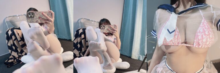 兔宝妮双重魅力:黑丝制服与透视水手服高清写真(共35张图片)