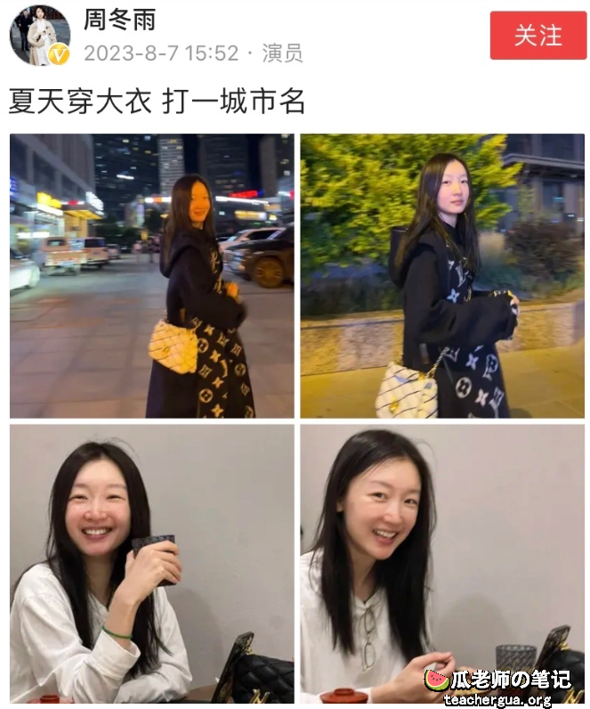 最近周冬雨的一条微博引起广泛关注,平日的周冬雨非常注重打扮并且整个人也都很瘦小,曾经有网友戏称如果去掉脸只拍身子分不清周冬雨的正反面。