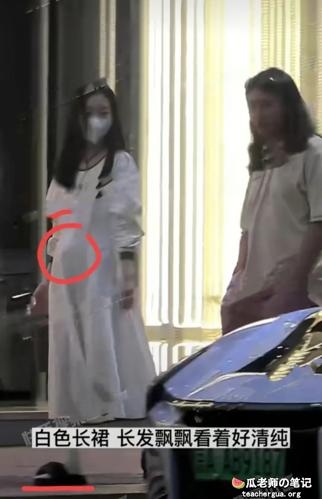 虽然有人质疑这可能是风吹的问题,但这张照片则可以看到明显小腹位置有圆滚滚的东西把衣服顶了起来。