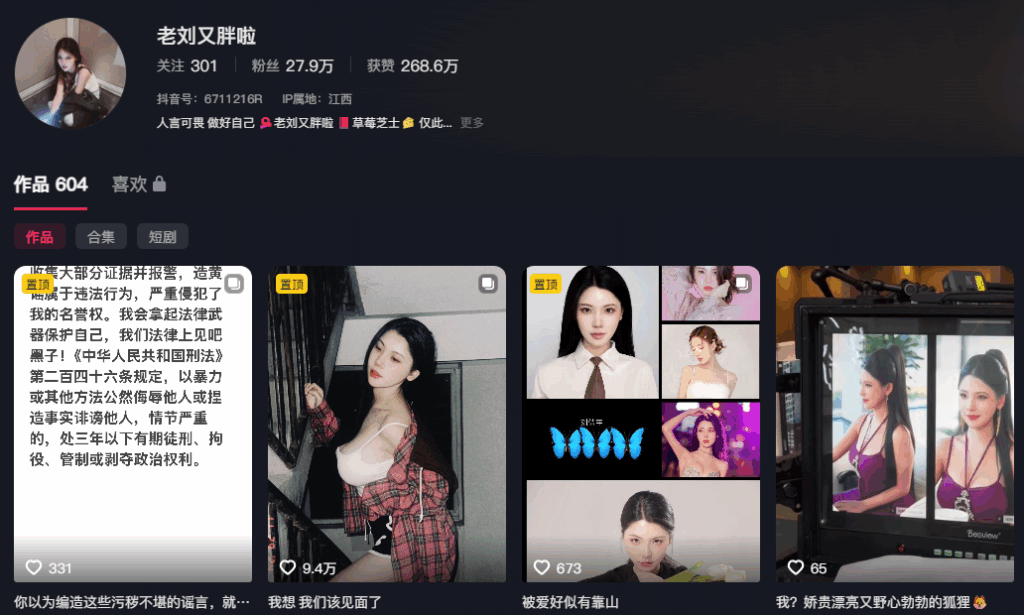 抖音短剧女王,在多部短剧中担任女主角的劳模老刘又胖啦,极高的颜值和凹凸有致的身材绝对是制胜秘诀,但为了涨粉也是各种小妙招都用上了。