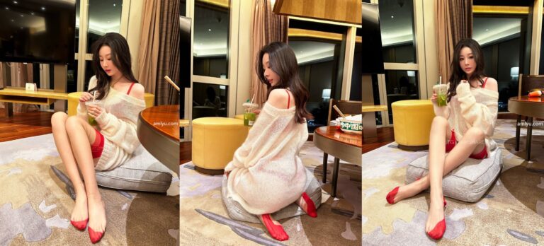 小逗逗的诱人写真:宽松白色毛衣与性感红内衣搭配展示优雅魅力(共24张图片)
