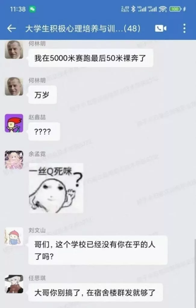 在河北石家庄邮电学院的运动会上,5000米赛跑即将产生冠军。在距离终点线仅有50米的时刻,一位名叫何林明的选手令人震惊地开始脱衣,毫无顾忌地果奔冲刺向终点。此时的场面令人瞩目,观众们无不为之惊叹。