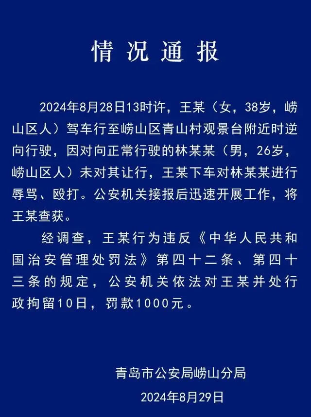 8月28日,在山东青岛的崂山风景区,一名女司机驾驶路虎逆行并试图插队,结果不慎追尾了一辆大巴车。事后,她对正常行驶的对向车辆发泄怒火,疯狂辱骂并殴打对方司机,叫嚣道:“逆行怎么了!打你怎么了……”最终,这名女子选择肇事逃逸,留下诸多疑问与愤怒。