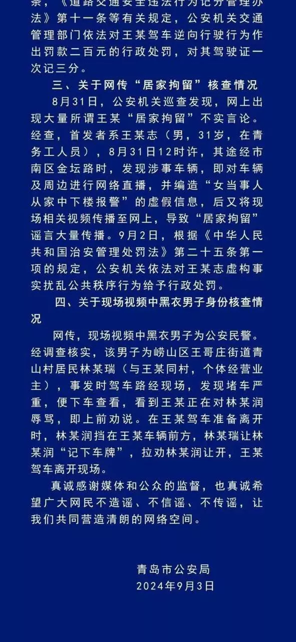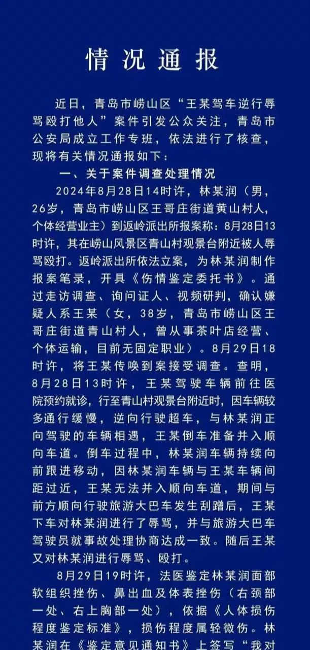 据报道,林某目前在青岛经营民宿,当时车上还有乘客和孩子。事发时,林某因为对方是女性,选择没有还手,但仍遭到女司机的辱骂和殴打。林某在事后表示,由于头部受伤,他正在住院治疗,并且有头痛、恶心等症状 。