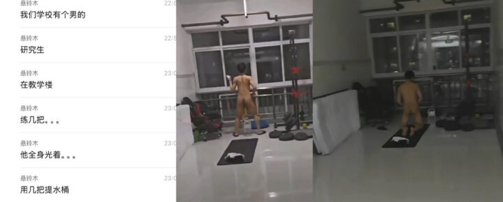 不是哥们!?大学男寝楼道深夜果男千斤坠健身只练一头肌?