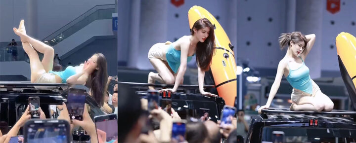 根本把持不住!成都车展奇瑞ICAR展位车模小乌苏大尺度动作惊爆全场
